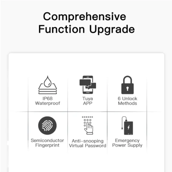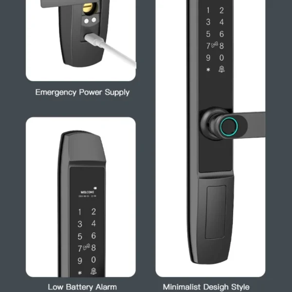 • Access Modes: Fingerprint, PIN, RFID, Mechanical Key, App